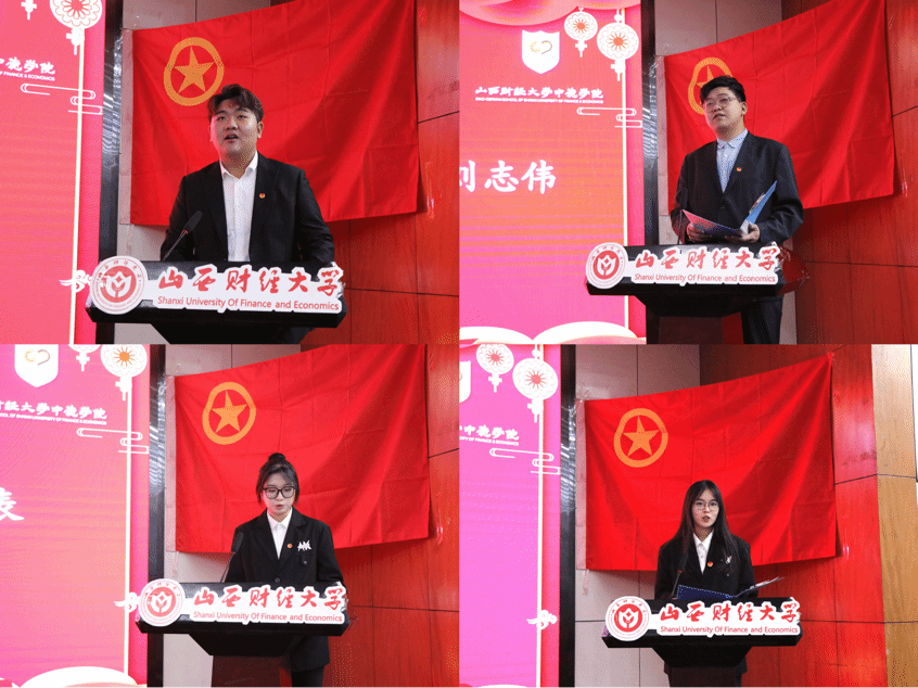团委副书记王文韬、学生会主席团刘志伟、学生权益委员会主任高艺文、德语协会会长高欣懿代表汇报学年工作。新一届团委副书记张珺越、新一届学生会主席团柴昱坤、新一届学生权益委员会主任刘柏熙分别代表发言。他们强调作为学生干部,要以身作则,充分发挥青年才干,团结合作,锐意进取。要不断提高自身素质,勇于担当,积极投身到学校各项工作中去,为学校和学院的发展贡献自己的力量。