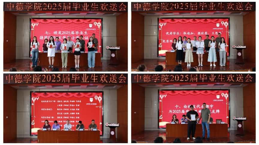 毕业生代表柴昱坤同学在发言中表示,2025届学子将始终铭记“修德立信,博学求真”的校训,于时代浪潮中勇立潮头,在人生征程的风雨考验中坚毅前行,在民族复兴的历史使命里奋楫争先,以中德学子的智慧与担当,书写属于这一代人的璀璨未来!
