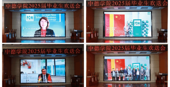 德国FOM大学德中经济科技学院院领导及教师向2025届毕业生发来了祝福视频。祝贺同学们圆满完成四年本科课程,并强调中德两国经济发展势头强劲、就业前景广阔,希望大家把握机遇、精进技能,成长为优秀的复合型人才。