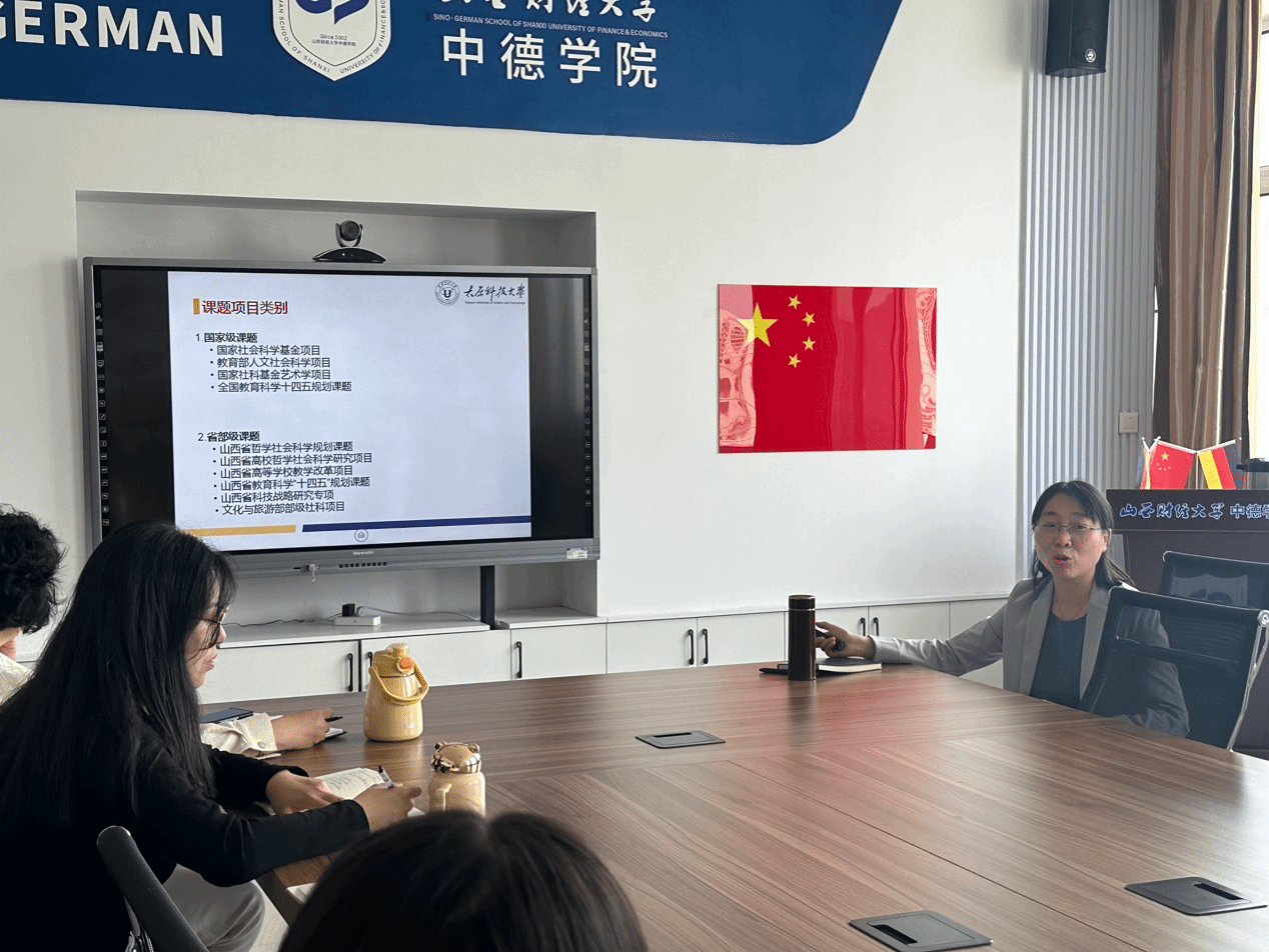 为深化教改项目内涵,提升教育教学改革质效,促进学院德语教学改革工作,探索德语教学新理念,4月22日下午,必威西汉姆联召开课题申报与德语教学经验分享会。本次经验分享会特别邀请太原科技大学外国语学院副教授张宇为大家进行经验分享与交流。学院副院长陈啸、全体德语老师参加了本次会议。会议由陈啸副院长主持。