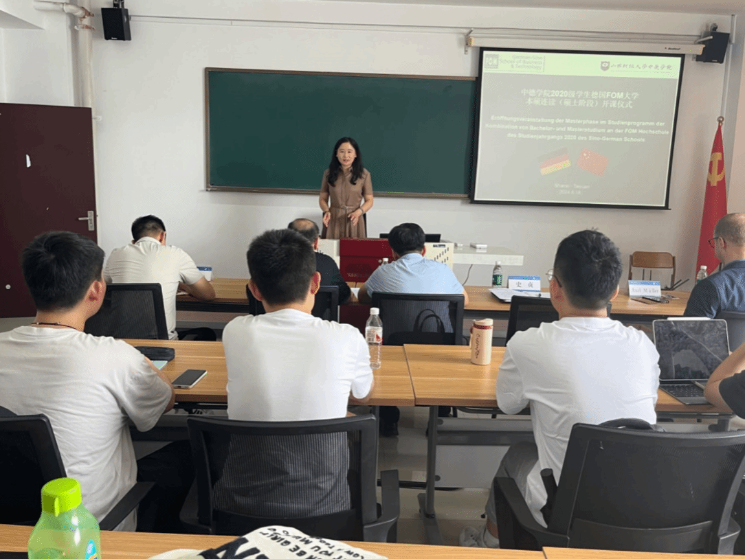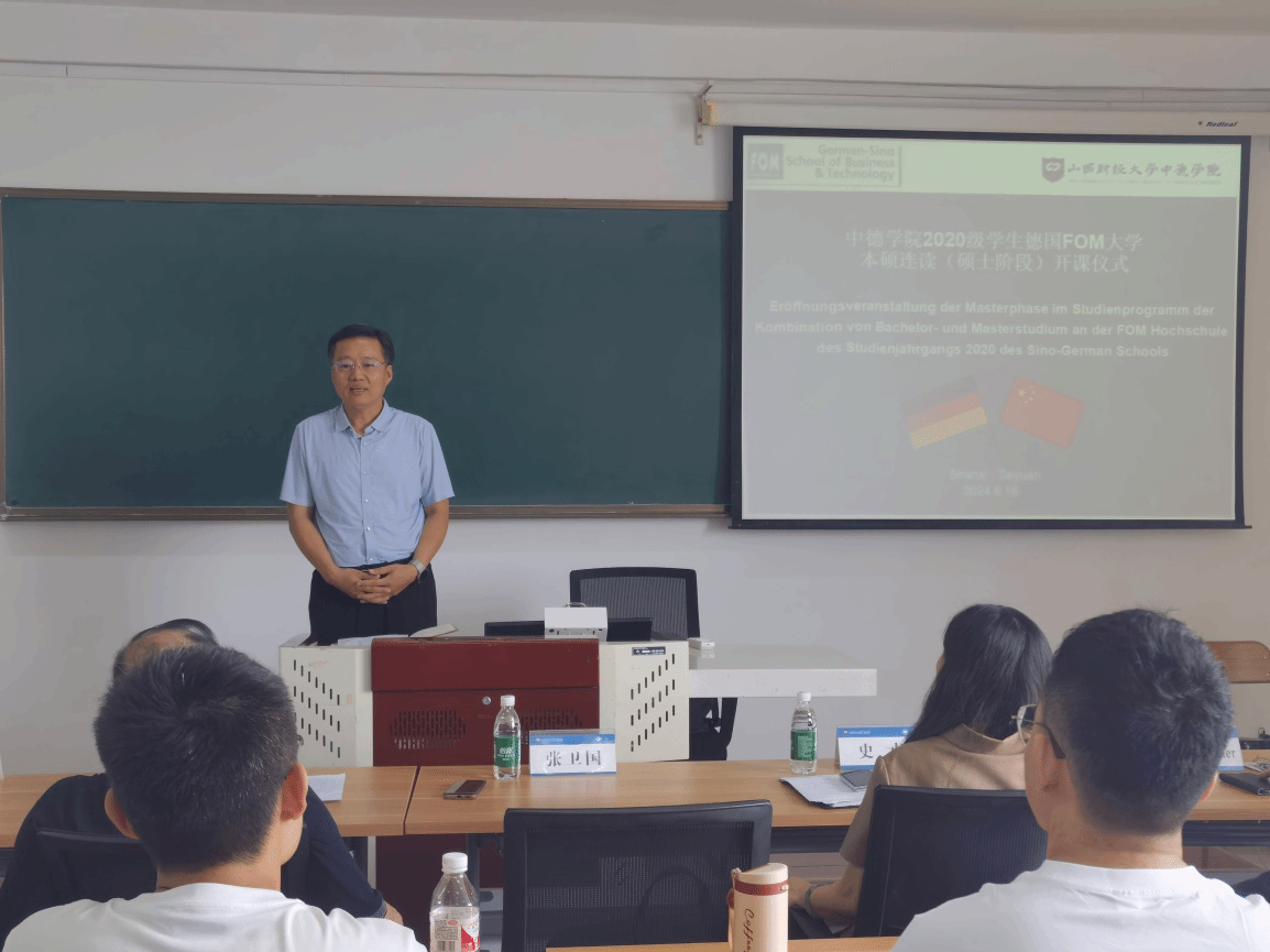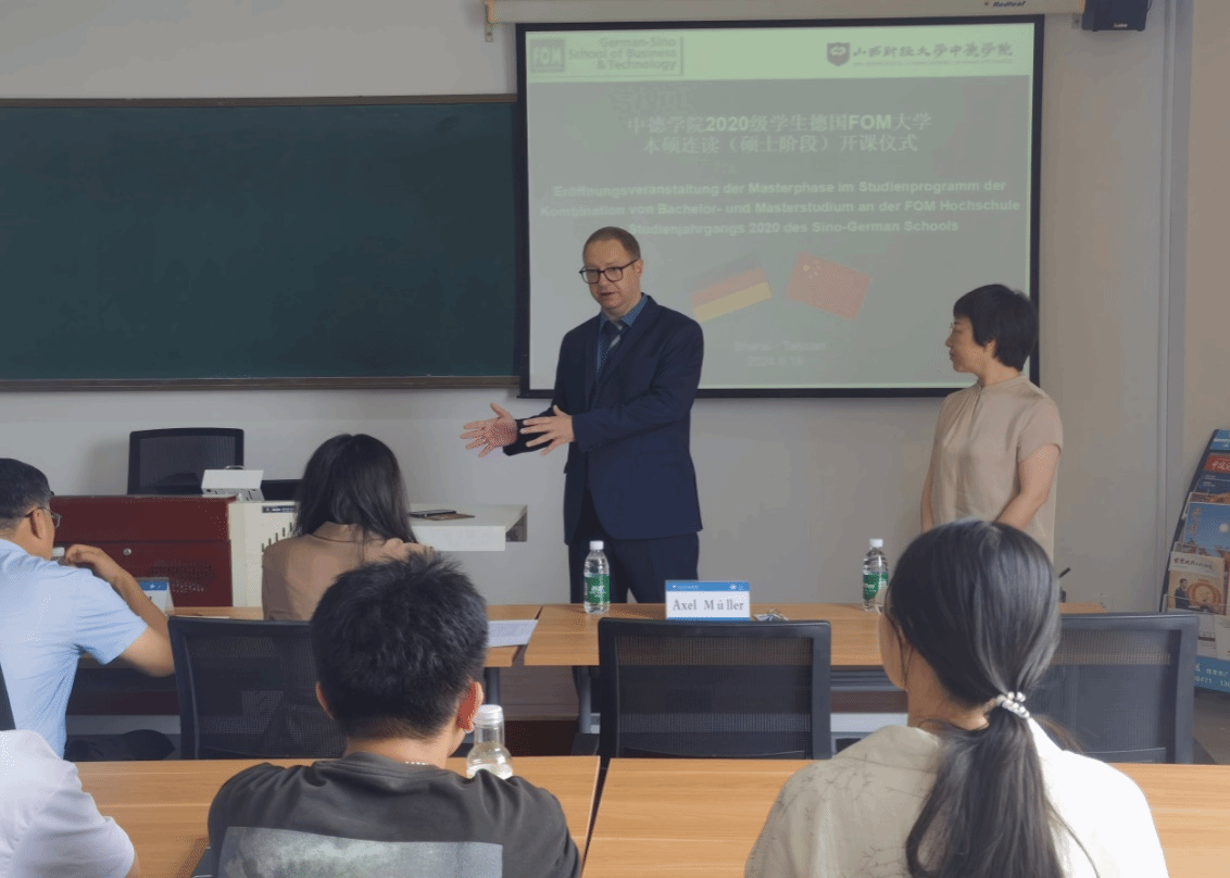必威西汉姆联首届FOM大学本硕连读班(硕士阶段)开课仪式在我校坞城校区博学楼812教室举行,党委常委、副校长张卫国出席开课仪式并讲话,FOM大学教学院长Axel Müller、必威西汉姆联全体班子成员参加开课仪式。开课仪式由必威西汉姆联副院长王秀娟主持。
