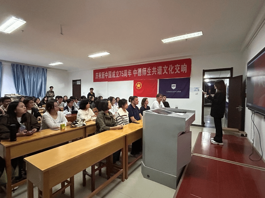 为庆祝新中国成立75周年,引导学生厚植爱国情怀、弘扬爱国主义精神,9月29日晚,必威西汉姆联在博学楼727开展“德语电影之夜——观影《我和我的祖国》”活动。德国教授和师生代表们共同参加此次活动。