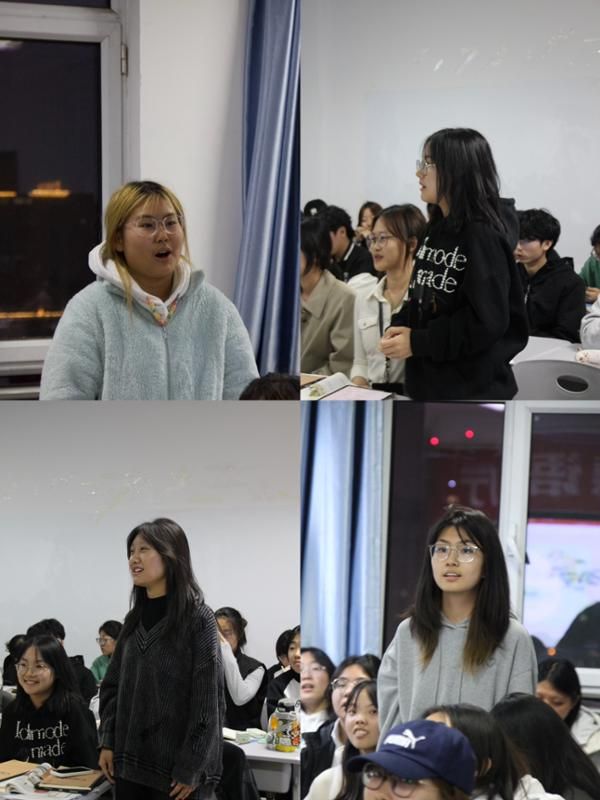 第二环节,主场交给同学们,大家在老师们的鼓励下踊跃发言,勇敢地用德语分享家乡风貌与个人兴趣,展示了初步理解和浅层应用的学习成果。