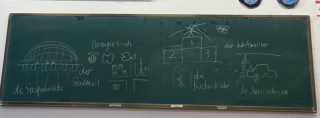 上周六,我将两周以来学习过的单词设置成为题目,让学生以小组为单位,通过“你画我猜”的游戏形式,让大家在放松心情的同时复习了近期学习的内容。今后我也会将更多类似的方法融入课堂,使得学生会学德语、爱学德语。