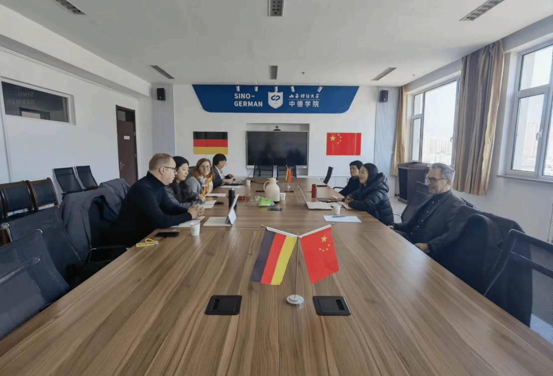 德国FOM大学教授Axel Müller、Peters,助教Schubert,德语教师张媛、白洛参加了本次会议,会议由王秀娟副院长主持。