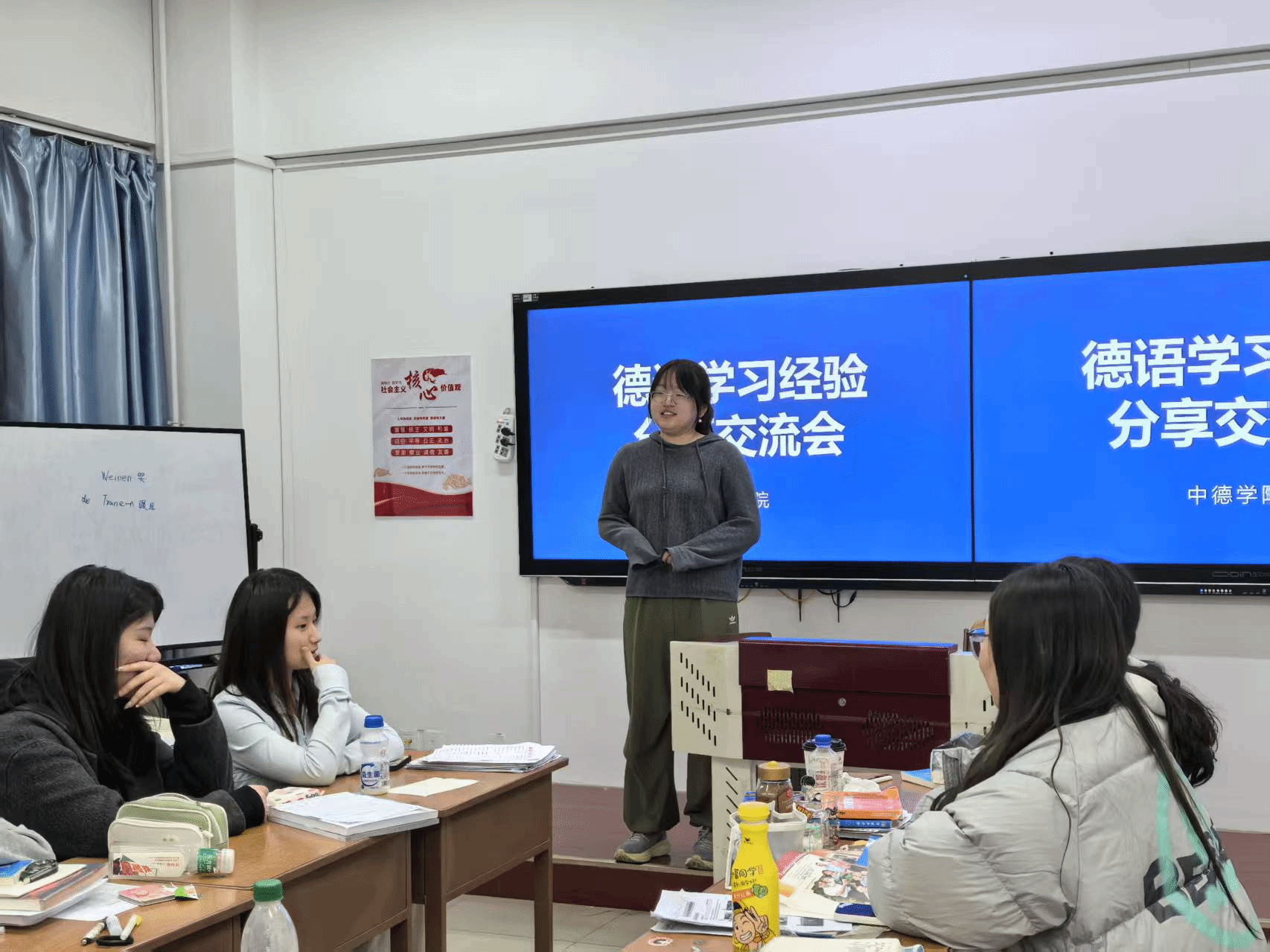 针对低年级学生德语学习难点,学院组织高年级优秀学子成立志愿服务队,开展 “学习经验分享会”、“学习交流沙龙” 等活动。志愿者结合自身学习经历,分享语法解析、听力训练、专业课经验分享等。通过持续帮扶,让学生在语言能力提升的同时,也深刻体会到互助共进的志愿服务精神。